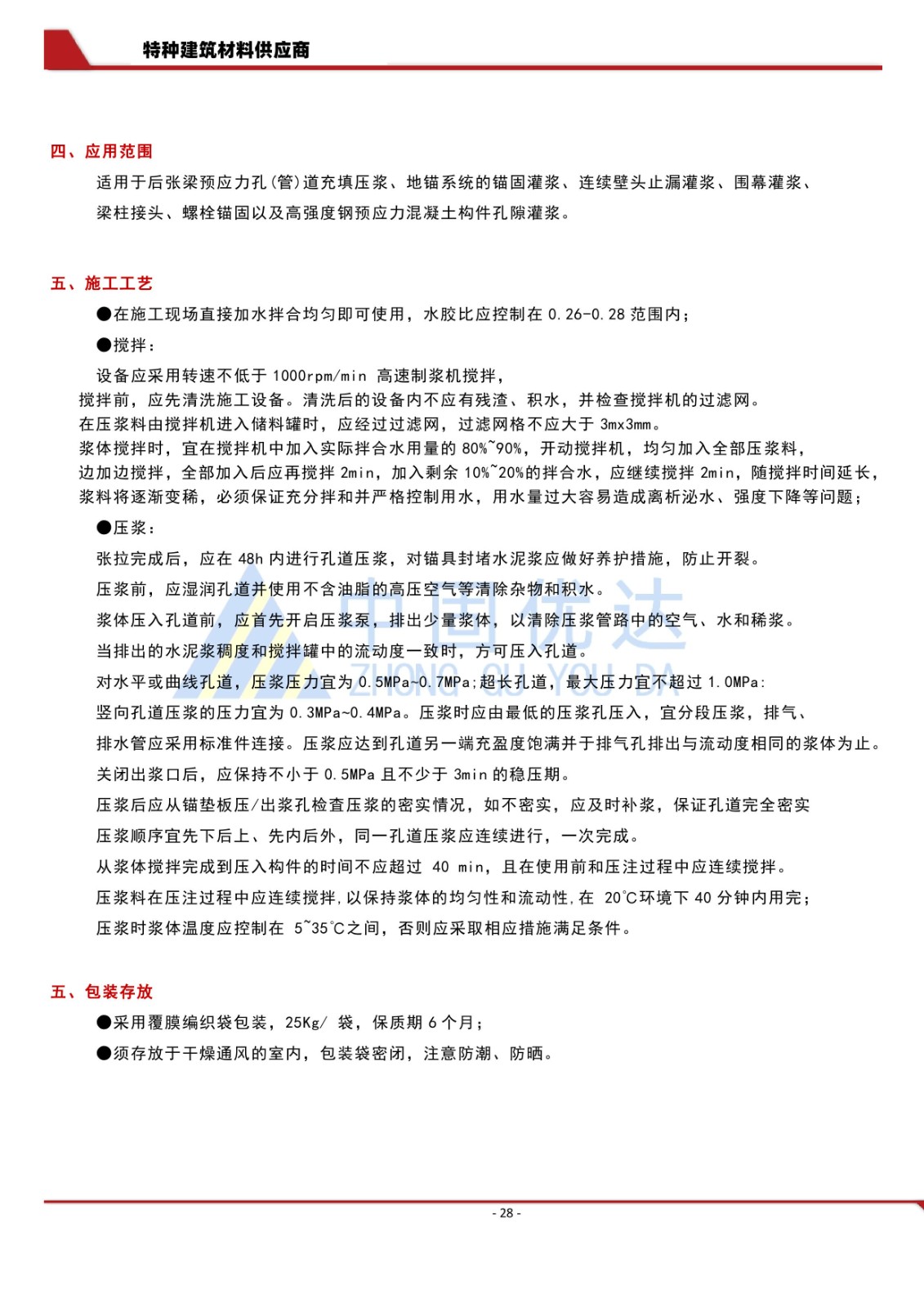 壓漿料/預應力孔道壓漿料