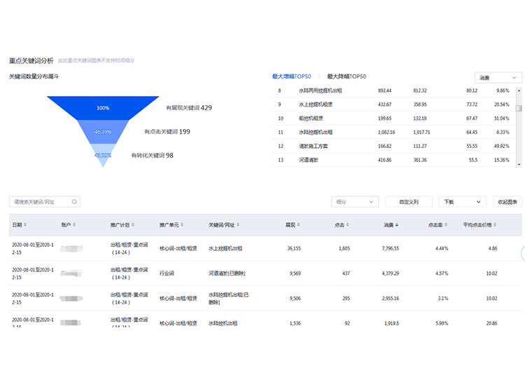 通過專業(yè)SEM分析師對(duì)競(jìng)價(jià)后臺(tái)進(jìn)行賬戶結(jié)構(gòu)優(yōu)化、篩選高質(zhì)量關(guān)鍵詞等操作提升競(jìng)價(jià)推廣效果。